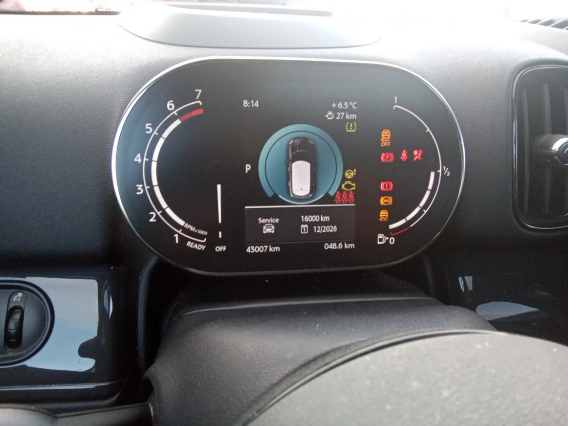 Asientos deportivos para conductor y acompañante, Caja de cambios Steptronic con doble embrague, Northwood Edition, Accionamiento automático del portón trasero, Paquete de compartimentos, Guarnecido interior del techo antracita, Reposabrazos delantero, Connected Navigation Plus, Sistema de telefonía con carga inalámbrica, Informacion del trafico en tiempo real, Acceso confort, Alfombrillas de velours, Paquete de retrovisores exteriores, Reglaje de los asientos traseros, Acristalamiento de protección solar, Cámara para marcha atrás, Cuadro de mandos digital, MINI Head-Up Display, Asistente de aparcamiento, Integración para Smartphone, Sistema de navegación MINI, Asistente personal, Sensatec Carbon Black Carbon Black, Aspecto exterior MINI ALL4, Pintura metalizada Enigmatic Black, Carriles longitudinales para la baca, negro, Techo y caperuzas de los retrovisores plateado, 17", Channel Spoke Black, Techo de cristal panorámico, Sistema de ventilación, Controles digitales, Filtro de polen, Filtro de carbón activo, Control climatización en conductor/acompañante, Control climatización digital, Aire acondicionado, 2 zonas de climatización, Tipo de control del climatizador auto, Control de crucero, Luces de cortesía delante, Luces de cortesía trasero, Iluminación de acceso, Espejo de cortesía para acompañante, Espejo de cortesía para conductor, Telemática, Bluetooth, Botón de arranque, Sensor de lluvia, Número de puertas 5, Inyección por gasolina - inyección directa, Combustible sin plomo, 95 octanos, Comb. primario gasolina, Tipo de depósito principal, 51 de capacidad, Longitud de 4297 mm, Anchura de 1822 mm, Altura de 1557 mm, Altura libre sobre el suelo 165, Batalla 2670 mm, Ancho de vía delantero 1585, Ancho de vía trasero 1587, Diámetro de giro entre paredes 11400, Dimensiones interiores, Altura banqueta-techo delante 1029 mm, Altura banqueta-techo detrás 972 mm, Anchura delantera en caderas 1432 mm, Anchura trasera en caderas 1419 mm, Espacio delantero para las piernas