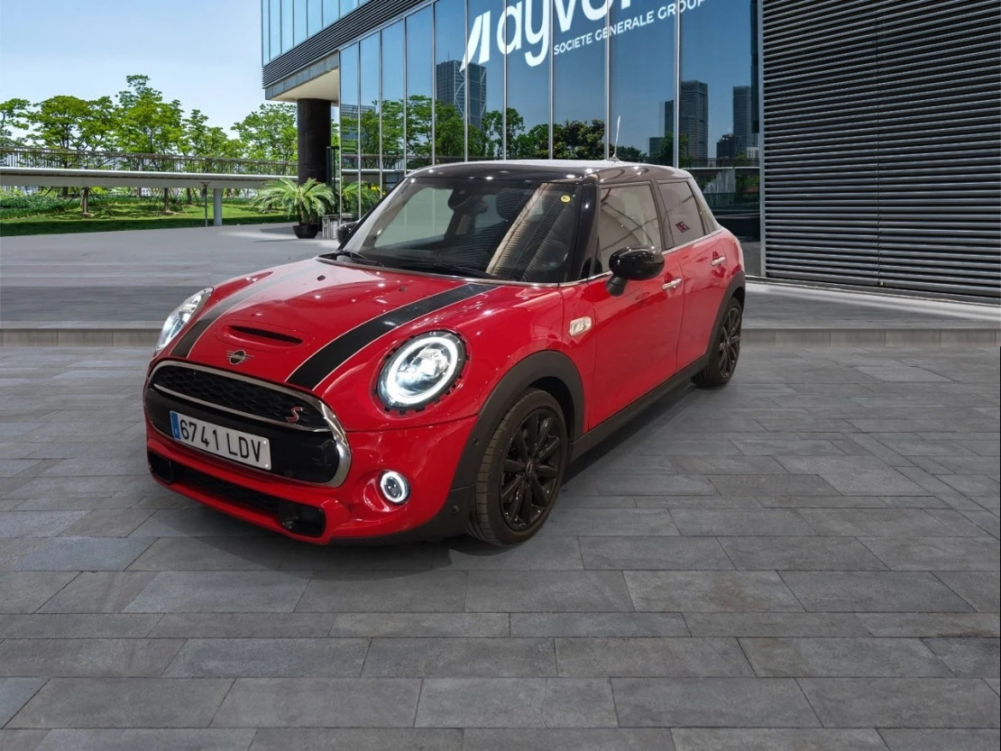 17", Cosmos Spoke, 17", Cosmos Spoke black, Acceso confort, Acristalamiento de protección solar, Alfombrillas de velours, Asiento del acompañante con ajuste en altura, Asistente de aparcamiento, Caja de cambios Steptronic Sport con doble embrague, Calefacción de los asientos delanteros, Cámara para marcha atrás, Chili, Chili Red, Connected Navigation Plus, Control de crucero activo, Control de distancia en aparcamiento (PDC) integral, Cuero Lounge MINI YOURS Carbol Black negro, Driving Assistant, Información del Tráfico en Tiempo Real (RTTI), Línea interior Glowing Red, Líneas negras en el capó, MINI Connected XL, MINI Head-Up Display, MINI Yours Leather, Paquete de compartimentos, Paquete de retrovisores exteriores, Paquete Driving Assistant, Paquete MINI Excitement, Paquete Sky, Pintura sólida, Preparación para Apple CarPlay, Retrovisor interior, con ajuste automático anti-deslumbramiento, Sistema de altavoces HiFi Harman Kardon, Sistema de navegación MINI, Sistema de telefonía con carga inalámbrica, Superficie interior Piano Black, Techo de cristal panorámico, Techo y carcasas de los retrovisores negro (incompatible con A94), Volante Deportivo de Cuero MINI YOURS, Sistema de ventilación, Controles digitales, Filtro de pólen, Filtro de carbón activo, Control climatizacion en conductor/acompañante, Control climatización digital, Aire acondicionado, 2 zonas de climatización, Tipo de control del climatizador auto, Apertura remota maletero, funcionamiento control remoto, luces de cortesia delante, Luz maletero, Espejo de cortesía para acompañante, Espejo de cortesía para conductor, Telematica, Bluetooth, Botón de arranque, Control, Ordenador de viaje, Sensor de lluvia, Numero de puertas 5, Inyección por gasolina - inyección directa, Combustible sin plomo, 95 Octanos, Comb. Primario gasolina, Tipo de deposito principal, 44 de capacidad, Longitud de 4005 mm, Anchura de 1727 mm, Altura de 1425 mm, Altura libre sobre el suelo 146, Batalla 2567 mm, Ancho de vía delantero 1